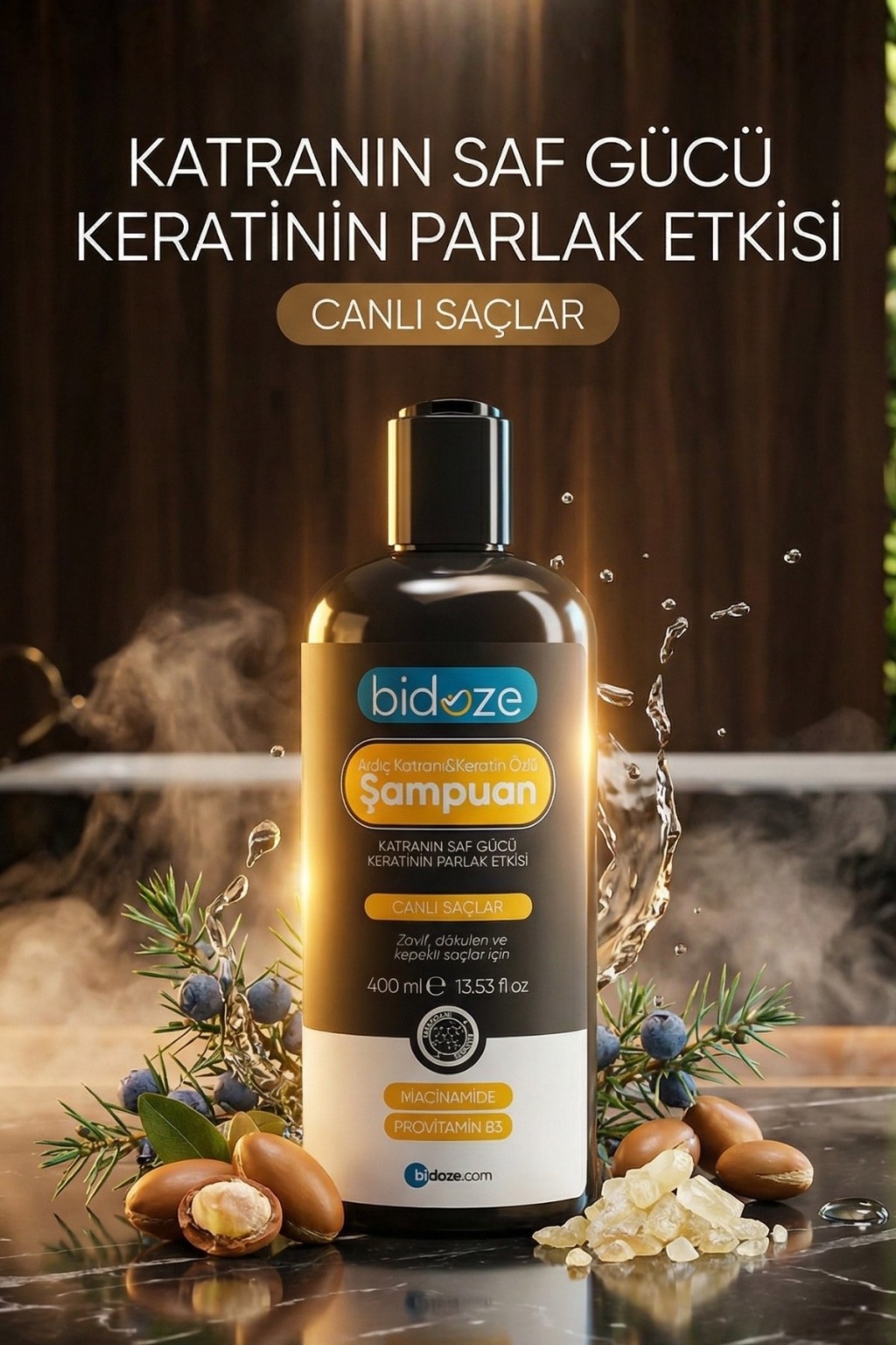 Bidoze Ardıç Katranı & Keratin Şampuanı, geleneksel saç bakımının güçlü içeriği olan Ardıç Katranı ile modern saç bakım teknolojisinin yıldızı Keratini birleştiren özel bir formüldür.