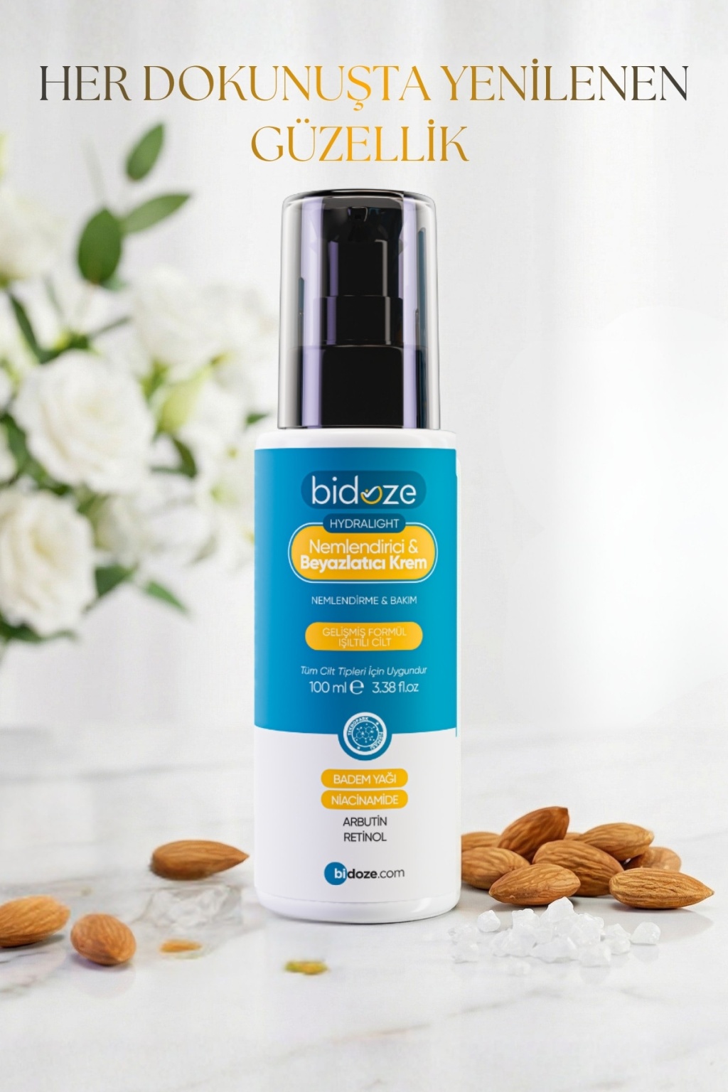 Bidoze Hydralight, cildin ihtiyaç duyduğu yoğun nemi sağlarken aynı zamanda cilt tonunu eşitlemeye ve daha aydınlık bir görünüm kazandırmaya yardımcı olan çok yönlü bir bakım kremidir. Sürüldüğünde ciltte beyaz iz bırakmayan özel formülü ile konforlu bir kullanım sunar.