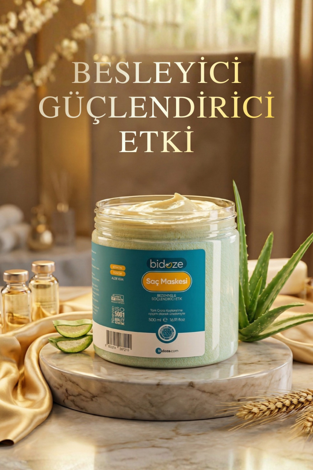 Bidoze Saç Maskesi, işlem görmekten yorulmuş, yıpranmış ve canlılığını yitirmiş saçlar için geliştirilmiş profesyonel bir kurtarıcıdır. Saçın ana yapı taşları olan Keratin ve Kolajen ile zenginleştirilen formülü, saç tellerinizi kökten uca sararak onarır.