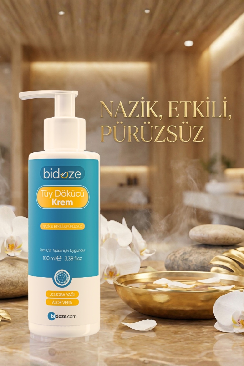 Bidoze Tüy Dökücü Krem, istenmeyen tüylerden kesik riski olmadan pratik bir şekilde kurtulmanıza yardımcı olurken; zengin yağ kompleksiyle cildinize ipeksi bir yumuşaklık kazandırır.