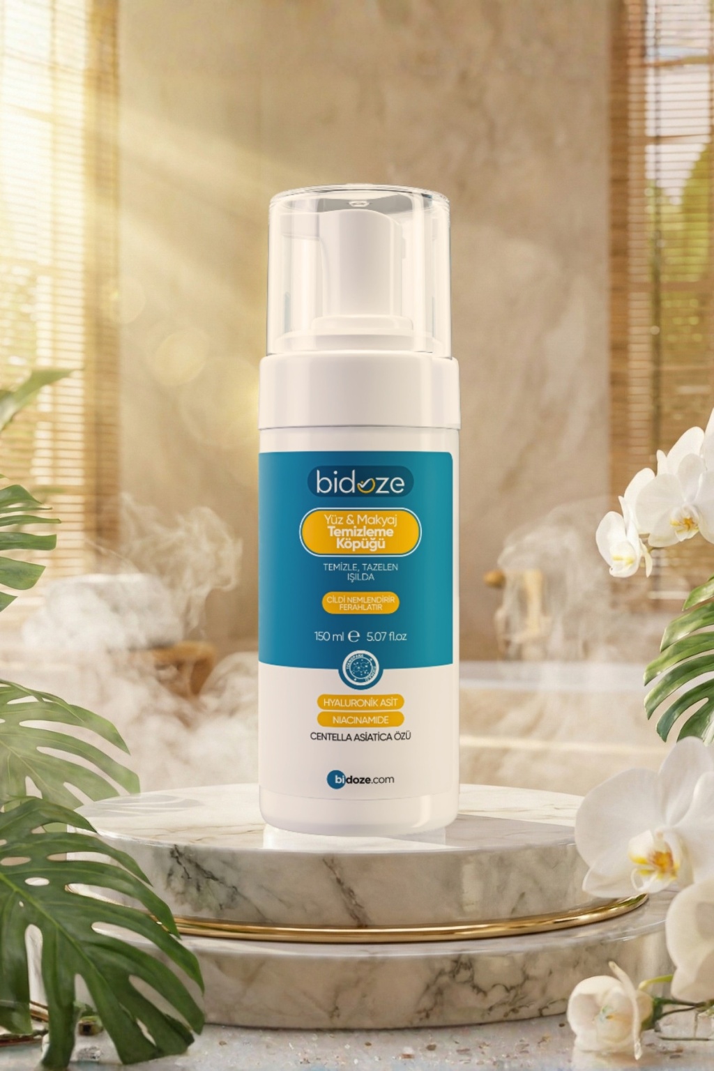 Bidoze Yüz & Makyaj Temizleme Köpüğü, cildinizde gün boyu biriken kiri, yağı ve makyaj kalıntılarını nazikçe temizlemek için geliştirilmiştir. Yumuşak köpük formu sayesinde cildi tahriş etmeden arındırır. İçeriğindeki Gül Suyu (Rosa Damascena) ferahlık sağlarken, Allantoin ve Aloe Vera hassasiyeti yatıştırmaya yardımcı olur. Yıkama sonrası gerginlik hissi bırakmaz.